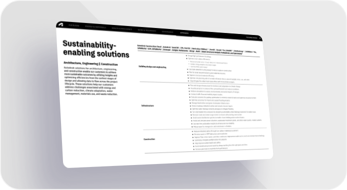 FY22 IMPACT REPORT OVERVIEW ENERGY & MATERIALS HEALTH & RESILIENCE WORK & PROSPERITY GOVERNANCE APPENDIX 77 ® ® ® ® ® ® ® Autodesk Construction Cloud , Autodesk AutoCAD , CFD, Civil 3D , Fabrication CAMduct™, FormIt , FormIt Pro, Info360™, InfoDrainage™, InfoWater Pro, ® ® ® ® ® ® ® Sustainability- InfoWorks ICM, InfraWorks , Innovyze , Insight, Navisworks , ReCap , Revit , Robot Structural Analysis Professional, and Spacemaker ● Design high-performance buildings enabling solutions ● Optimize total carbon efficiencies • Reduce embodied carbon through design and material specification • Conduct energy analysis at key project stages Architecture, Engineering & Construction Building design and engineering • Optimize HVAC system design ● Use clash detection during design to reduce waste in construction Autodesk solutions for architecture, engineering, ● Plan for smart decommissioning and materials recovery and construction enable our customers to achieve ● Improve structural material efficiency more sustainable outcomes by utilizing insights and ● Optimize site planning with AI to make informed choices around daylight, noise, sun, and wind optimizing efficiencies from the earliest stages of ● Help mitigate the urban heat island effect with microclimate analysis design and allowing data to flow across the project ● Plan and design infrastructure for resilience and adaptation to climate change lifecycle. These solutions help our customers ● Visualize projects in context of the surrounding built and natural conditions address challenges associated with energy and ● Perform simulations to assess environmental and social impacts of designs carbon reduction, climate adaptation, water ● Conduct traffic flow and mobility impact studies management, materials use, and waste reduction. ● Evaluate scenarios for grading optimization to minimize material waste and optimize movement of dirt ● Optimize outcomes for inland and coastal flooding projects ● Manage bioretention and green stormwater infrastructure Infrastructure ● Reduce roadway embodied carbon and natural resource inputs ● Optimize water drainage network and pipes to mitigate flooding ● Turn stormwater into a resource by designing sustainable urban drainage reservoirs for water reuse ● Forecast storm and sewer surge events to ensure safety during construction ● Model water distribution systems to enable clean drinking water reaches homes ● Model and simulate sewer collection, wastewater treatment plants, and other water quality–related systems ● Use real-time, actionable insights to enhance service reliability ● Help prepare for emergencies and maintenance schedules ● Reduce embodied carbon through low-carbon material procurement ● Minimize waste in MEP fabrication and installation Construction ● Improve flow, reduce waste, and drive continuous improvement with end-to-end lean construction technology ● Seamlessly integrate prefabrication into projects ● Help improve worker health and safety ● Avoid rework and prevent waste by always working from the right plans and docs ● Increase precision to maximize built performance