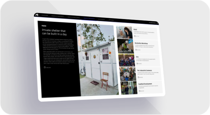 FY22 IMPACT REPORT OVERVIEW ENERGY & MATERIALS HEALTH & RESILIENCE WORK & PROSPERITY GOVERNANCE APPENDIX 63 Pallet ISAIC is developing virtual training and on-demand machine Private shelter that repair in the manufacturing industry. Learn more can be built in a day Image courtesy of ISAIC As part of the Autodesk Foundation Work & Prosperity portfolio, Revolution Workshop we have made an investment in Pallet, a social purpose company that manufactures rapid-response shelter villages to provide is building resilience by providing construction job private transitional housing in a community setting, while building training to Chicago's underserved communities. a more equitable and inclusive manufacturing workforce. To date, Pallet has served thousands of unhoused people through over 60 Learn more shelter villages across 11 states. Image courtesy of Revolution Workshop Pallet’s panelized cabins can each be built in 30 minutes and require minimal training to install, offering cities, counties, states, and nonprofits cost-effective and high-quality housing units that Zinc provide safety, dignity, and community for unhoused people. Each village resident also has access to wrap-around support services, is unlocking new opportunities for people hard hit such as meals and case management, provided by local service by automation and globalization. providers. Pallet cabins are insulated, resistant to mold, rot, and pests, easy to clean, and can last more than 10 years. Learn more Image courtesy of Zinc VC Learn more The Industrial Commons is transforming the textile industry in the United States with a worker-centric manufacturing model. Learn more Image courtesy of Franzi Charen Coalfield Development is facilitating employment and economic transition in Appalachia. Image courtesy of Learn more Image courtesy of Pallet Coalfield Development