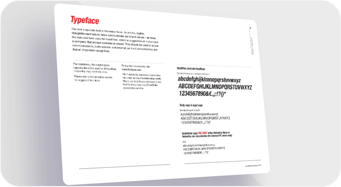 18 Typeface s k c o The Avis corporate font is Helvetica Neue. Its simple, legible, l b g n straightforward nature helps communicate our brand values – as does i d l i u b the italicised form used for headlines, which is suggestive of motion and c i s a a company that always operates at speed. This should be used in all our b e h communications, both external and internal, as it will aid uniformity and T that all-important recognition. For consistency, the weights given To buy the Helvetica font visit Headlines and sub-headlines opposite should be used for all headlines, www.linotype.com supporting copy and body copy. Helvetica Neue Bold Condensed Oblique 77 NB. If absolutely necessary a secondary Please refer to the templates section font could be used for internal pc work. abcdefghijklmnopqrstuvwxyz for suggested font sizes. Please use Arial Narrow for headers and Arial for body copy. e.g. PowerPoint ABCDEFGHIJKLMNOPQRSTUVWXYZ presentation or letter. 1234567890&£.,;:!?()* Body copy & legal copy Helvetica Neue Roman 55 abcdefghijklmnopqrstuvwxyz ABCDEFGHIJKLMNOPQRSTUVWXYZ 1234567890&£€.,;:!?()* Substitute copy USE ONLY when Helvetica Neue or Helvetica are unavailable (for internal PC work only) Arial abcdefghijklmnopqrstuvwxyz ABCDEFGHIJKLMNOPQRSTUVWXYZ 1234567890&£€.,;:!?()* Avis Brand Guidelines 07.08