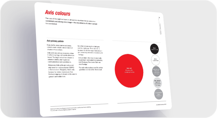 12 Avis colours s k c o l The use of the right colours in all communications helps ensure a b g n i consistent and strong Avis image – the importance of which cannot d l i u b be overstated. c i s a b e h T Avis primary palette Every leafl et, every banner and every Our other colours are Avis dark grey Black advertisement should contain identical and Avis light grey. These are not to C0/M0/Y0/K100 shades of Avis colours. be used for the Avis logos themselves – Avis red is our primary corporate colour. just secondary elements associated with It refl ects our logo and speaks about our the logo. brand. The bright colour was chosen to Avis premium silver may be used only White enhance visibility and to give our on premium communications including C0/M0/Y0/K0 communications extra prominence. Avis Preferred, Presidents Club and Always use Avis red in spot colour and Avis Prestige. only revert to 4 colour process (CMYK) For web colours please see the on-line Avis red at the last resort. Burgundy should only guidelines section within this manual. Avis dark grey Pantone 485 Pantone 423 be used for station interiors and Avis C0/M100/Y91/K0 C0/M0/Y0/K47 Preferred signage. It should not be used in (47% Black) general communications. Avis light grey Pantone 427 C0/M0/Y0/K15 (15% Black) Avis premium silver Pantone 877 Colours are shown for reference only and should not be used for visual colour matching. For print, refer to Pantone Matching System swatches. Avis Brand Guidelines 05.08