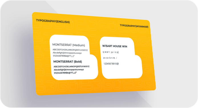 TYPOGRAPHY(ENGLISH) TYPOGRAPHY(MYANMAR) MONTSERRAT (Medium) ABCDEFGHIJKLMNOPQRSTUVWXYZ Abcdefghijklmnopqrstuvwxyz 0123456789$&@?!’(.,;:)” MONTSERRAT (Bold) ABCDEFGHIJKLMNOPQRSTUVWXYZ Abcdefghijklmnopqrstuvwxyz 0123456789$&@?!’(.,;:)” W15ART HOUSE WIN qwertyuiop[ zxcvbnm,./ 12345678910@