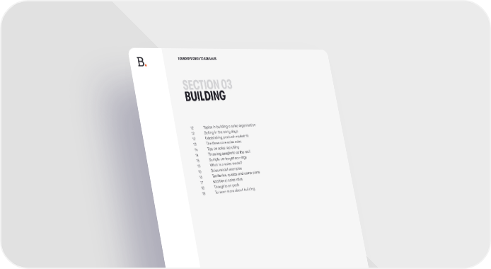 FOUNDER’S GUIDE TO B2B SALES SECTION 03 BUILDING 12 Topics in building a sales organisation 12 Selling in the early days 12 Establishing product-market fit 13 The three core sales roles 14 Tips on sales recruiting 14 Throwing spaghetti at the wall 15 Sample on-target earnings 15 What is a sales model? 16 Sales model examples 16 Territories, quotas and comp plans 17 Additional sales roles 18 Thoughts on pods 18 To learn more about building SPRING 2023 .11