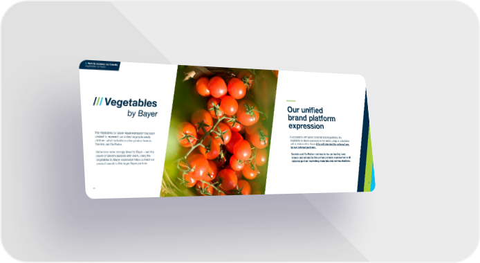 3. How to express our brands Vegetables by Bayer Our unified brand platform expression The Vegetables by Bayer visual expression has been In accordance with Bayer corporate brand guidelines, the created to represent our unified vegetable seeds Vegetables by Bayer expression is not brand, a logo or a business platform, which includes our two product brands, unit or division within Bayer. It is not intended for external use Seminis and De Ruiter. by our external partners. We’re now more strongly linked to Bayer – and the Seminis and De Ruiter continue to be our leading seed power of Bayer’s purpose and vision. Using the brands and should be the primary brands represented in all Vegetables by Bayer expression helps connect our external partner marketing materials and communications. product brands to this larger Bayer platform. 28 29