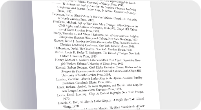 Bibliography 237 Estes, Steve. I Am a Man!: Race, Manhood, and the Civil Rights Movement. Chapel Hill: University of North Carolina Press, 2005. Evans, Zelia, and J. T. Alexander, eds. The Dexter Avenue Baptist Church. Montgomery, Ala.: Dexter Avenue Baptist Church, 1978. Fairclough, Adam. Race and Democracy: The Civil Rights Struggle in Louisi- ana, 1915–1972. Athens: University of Georgia Press, 1995. ———. To Redeem the Soul of America: The Southern Christian Leadership Conference and Martin Luther King, Jr. Athens: University of Georgia Press, 1987. Ferguson, Karen. Black Politics in New Deal Atlanta. Chapel Hill: University of North Carolina Press, 2002. Friedland, Michael. Lift up Your Voice Like a Trumpet: White Clergy and the Civil Rights and Antiwar Movements, 1954–1973. Chapel Hill: Univer- sity of North Carolina Press, 1998. Fulop, Timothy E., and Albert J. Raboteau, eds. African-American Religion: Interpretive Essays in History and Culture. New York: Routledge, 1997. Garrow, David J. Bearing the Cross: Martin Luther King, Jr. and the Southern Christian Leadership Conference. New York: Random House, 1986. Halberstam, David. The Children. New York: Random House, 1998. Harlan, Louis R. Booker T. Washington: The Wizard of Tuskegee. New York: Oxford University Press, 1983. Honey, Michael K. Southern Labor and Black Civil Rights: Organizing Mem- phis Workers. Urbana: University of Illinois Press, 1993. Korstad, Robert Rodgers. Civil Rights Unionism: Tobacco Workers and the Struggle for Democracy in the Mid-Twentieth-Century South. Chapel Hill: University of North Carolina Press, 2003. Lassiter, Valentino. Martin Luther King in the African American Teaching Tradition. Cleveland: Pilgrim Press, 2001. Lentz, Richard. Symbols, the News Magazines, and Martin Luther King. Ba- ton Rouge: Louisiana State University Press, 1990. Lewis, David Levering. King: A Critical Biography. New York: Praeger, 1970. Lincoln, C. Eric, ed. Martin Luther King, Jr.: A Profile. New York: Hill and Wang, 1970. Lincoln, C. Eric, and Lawrence Mamiya. The Black Church in the African- American Experience. Durham, N.C.: Duke University Press, 1990. Lischer, Richard, ed. The Company of Preachers: Wisdom on Preaching Augus- tine to the Present. Grand Rapids, Mich.: Eerdmans, 2002. ———. The Preacher King: Martin Luther King Jr. and the Word That Moved America. New York: Oxford University Press, 1995.