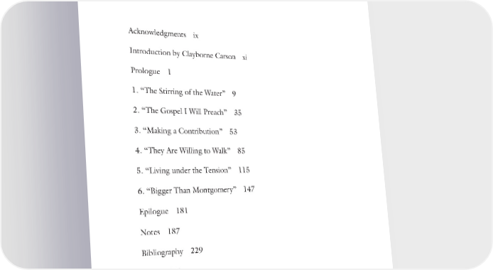Contents Acknowledgments ix Introduction by Clayborne Carson xi Prologue 1 1. “The Stirring of the Water” 9 2. “The Gospel I Will Preach” 35 3. “Making a Contribution” 53 4. “They Are Willing to Walk” 85 5. “Living under the Tension” 115 6. “Bigger Than Montgomery” 147 Epilogue 181 Notes 187 Bibliography 229 Index 241