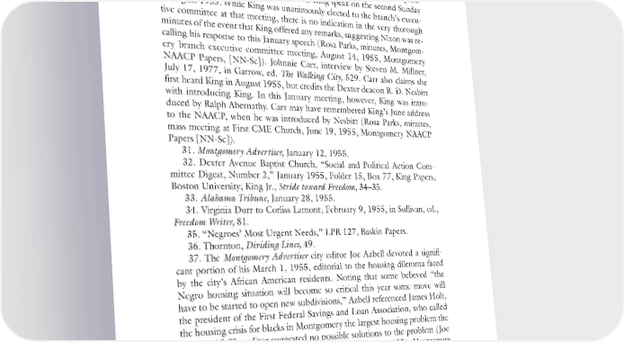 Notes to Pages 68–71 205 time. Although King undoubtedly impressed them, they would always view King through the lens of his civil rights leadership, coloring their earliest recollections. Rosa Parks, minutes, Montgomery branch meeting, January 9, 1955, Montgomery NAACP Papers (NN-Sc). Nixon, interview by Lumpkin. In this interview, Nixon claimed he heard King speak on the second Sunday in August 1955. While King was unanimously elected to the branch’s execu- tive committee at that meeting, there is no indication in the very thorough minutes of the event that King offered any remarks, suggesting Nixon was re- calling his response to this January speech (Rosa Parks, minutes, Montgom- ery branch executive committee meeting, August 14, 1955, Montgomery NAACP Papers, [NN-Sc]). Johnnie Carr, interview by Steven M. Millner, July 17, 1977, in Garrow, ed. The Walking City, 529. Carr also claims she first heard King in August 1955, but credits the Dexter deacon R. D. Nesbitt with introducing King. In this January meeting, however, King was intro- duced by Ralph Abernathy. Carr may have remembered King’s June address to the NAACP, when he was introduced by Nesbitt (Rosa Parks, minutes, mass meeting at First CME Church, June 19, 1955, Montgomery NAACP Papers [NN-Sc]). 31. Montgomery Advertiser, January 12, 1955. 32. Dexter Avenue Baptist Church, “Social and Political Action Com- mittee Digest, Number 2,” January 1955, Folder 15, Box 77, King Papers, Boston University; King Jr., Stride toward Freedom, 34–35. 33. Alabama Tribune, January 28, 1955. 34. Virginia Durr to Corliss Lamont, February 9, 1955, in Sullivan, ed., Freedom Writer, 81. 35. “Negroes’ Most Urgent Needs,” LPR 127, Baskin Papers. 36. Thornton, Dividing Lines, 49. 37. The Montgomery Advertiser city editor Joe Azbell devoted a signifi- cant portion of his March 1, 1955, editorial to the housing dilemma faced by the city’s African American residents. Noting that some believed “the Negro housing situation will become so critical this year some move will have to be started to open new subdivisions,” Azbell referenced James Holt, the president of the First Federal Savings and Loan Association, who called the housing crisis for blacks in Montgomery the largest housing problem the city faced.” The editor suggested no possible solutions to the problem (Joe Azbell, “City Limits,” Montgomery Advertiser, March 1, 1955). Montgomery Advertiser, March 20, 1955; J. Mills Thornton, “Challenge and Response in the Montgomery Bus Boycott of 1955–1956,” in Garrow, ed., The Walk- ing City, 336. Thornton examines the demographic and political shifts that occurred in Montgomery in the 1950s. He notes that the “Demographic