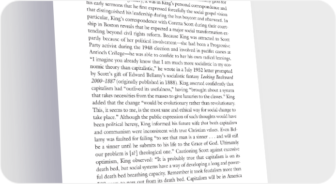 xvi Introduction Nelson Wieman, who, in King’s view, reduced God to an abstraction. “In God there is feeling and will, responsive to the deepest yearnings of the hu- 10 man heart; this God both evokes and answers prayers,” King concluded. Although King’s academic writings would provide a scholarly gloss for his oratory in Montgomery, it was in King’s personal correspondence and his early sermons that he first expressed forcefully the social gospel vision that distinguished his leadership during the bus boycott and afterward. In particular, King’s correspondence with Coretta Scott during their court- ship in Boston reveals that he expected a major social transformation ex- tending beyond civil rights reform. Because King was attracted to Scott partly because of her political involvement—she had been a Progressive Party activist during the 1948 election and involved in pacifist causes at Antioch College—he was able to confide to her his own radical leanings. “I imagine you already know that I am much more socialistic in my eco- nomic theory than capitalistic,” he wrote in a July 1952 letter prompted by Scott’s gift of Edward Bellamy’s socialistic fantasy Looking Backward 2000–1887 (originally published in 1888). King asserted confidently that capitalism had “outlived its usefulness,” having “brought about a system that takes necessities from the masses to give luxuries to the classes.” King added that the change “would be evolutionary rather than revolutionary. This, it seems to me, is the most sane and ethical way for social change to take place.” Although the public expression of such thoughts would have been political heresy, King informed his future wife that both capitalism and communism were inconsistent with true Christian values. Even Bel- lamy was faulted for failing “to see that man is a sinner . . . and will still be a sinner until he submits to his life to the Grace of God. Ultimately our problem is [a?] theological one.” Cautioning Scott against excessive optimism, King observed: “It is probably true that capitalism is on its death bed, but social systems have a way of developing a long and power- ful death bed breathing capacity. Remember it took feudalism more than 500 years to pass out from its death bed. Capitalism will be in America quite a few more years my dear.” King was not quite so candid in his sermons as in his letters to Scott, but the sermons he delivered while assisting his father at Ebenezer dur- ing the summer of 1953 (soon after his marriage in June) viewed racial segregation and discrimination in the context of a wide-ranging critique