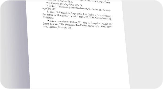 Notes to Pages 183–185 227 4. Friedland, Lift up Your Voice Like a Trumpet, 30. See also Durr, Out- side the Magic Circle, 309. 5. King, “Statement at Mass Meeting Supporting Freedom Riders,” May 21, 1961, Montgomery to Memphis Film Research Files; Montgomery Im- provement Association Bulletin, November 25, 1961, box 4, White House Staff Files, Harris Wofford Files. 6. Thornton, Dividing Lines, 599n76. 7. Millner, “The Montgomery Bus Boycott,” in Garrow, ed., The Walk- ing City, 517. 8. King, “Address at the Steps of the State Capitol at the conclusion of the Selma to Montgomery March,” March 25, 1965, Coretta Scott King Collection. 9. Nixon, interview by Millner, 551; King Jr., Strength to Love, 151–52; James Baldwin, “The Dangerous Road before Martin Luther King,” Harp- er’s Magazine, February 1961.