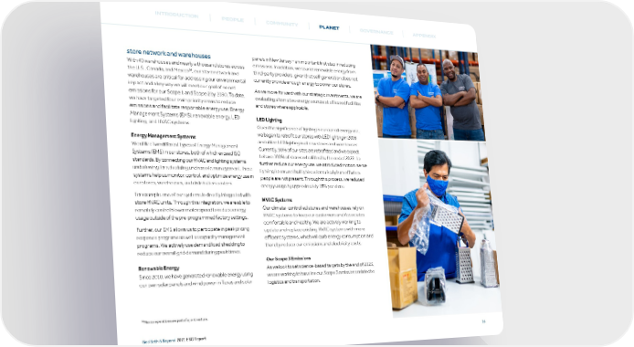 INTRODUCTION PEOPLE COMMUNITY PLANET GOVERNANCE APPENDIX store network and warehouses panels in New Jersey – an important first step in reducing With 40 warehouses and nearly a thousand stores across emissions. In addition, we source renewable energy from 26 third-party providers, given that self-generation does not the U.S., Canada, and Mexico , our store network and warehouses are critical for addressing our environmental currently provide enough energy to power our stores. impact and a key way we will meet our goal of no net As we move forward with our strategic investments, we are emissions for our Scope 1 and Scope 2 by 2030. To date, evaluating alternative energy sources at all leased facilities we have targeted four main priority areas to reduce and stores where applicable. emissions and facilitate responsible energy use: Energy Management Systems (EMS), renewable energy, LED LED Lighting lighting, and HVAC systems. Given the significance of lighting in our overall energy use, we began to retrofit our stores with LED lighting in 2016 Energy Management Systems and utilize LED lighting in all new stores and warehouses. We utilize two different types of Energy Management Currently, 90% of our sites are retrofitted and we expect Systems (EMS) in our stores, both of which exceed ISO to have 100% of stores retrofitted by the end of 2022. To standards. By connecting our HVAC and lighting systems further reduce our energy use, we introduced motion-sense and allowing for scheduling and remote management, these lighting to ensure that lights automatically turn off when systems help us monitor, control, and optimize energy use in people are not present. Through this process, we reduced our stores, warehouses, and distribution centers. energy usage by approximately 18% per store. For example, one of our systems is directly integrated with store HVAC units. Through this integration, we are able to HVAC Systems remotely control blower motor speed to reduce energy Our climate-controlled stores and warehouses rely on usage outside of the pre-programmed factory settings. HVAC systems to keep our customers and Associates comfortable and healthy. We are actively working to Further, our EMS allows us to participate in peak pricing update and replace existing HVAC systems with more response programs as well as capacity management efficient systems, which will curb energy consumption and programs. We actively use demand load shedding to thereby reduce our emissions and electricity costs. reduce our overall grid demand during peak times. Our Scope 3 Emissions Renewable Energy As we look to set science-based targets by the end of 2023, Since 2010, we have generated renewable energy using we are working to baseline our Scope 3 emissions related to our own solar panels and wind power in Texas and solar logistics and transportation. 26Mexico operations are part of a joint venture. Bed Bath & Beyond 2021 ESG Report 25