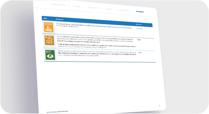 INTRODUCTION PEOPLE COMMUNITY PLANET GOVERNANCE APPENDIX SDG Alignment Reference Our partnerships with Rebuilding Together, Good360, and our product donations help ensure those in our communities have Community access to safe and healthy homes. Our commitment to responsible production starts with our own products. In our Owned Brands line, we have set targets to Planet responsibly source 50% of our cotton and sustainably source 50% of our wood by 2030. We also set a goal to achieve more than half of our packaging weight from recycled materials by 2030. To reduce waste, we set a goal to divert 100% of our waste in our operations from landfill by 2050. buybuyBABY also launched the company’s first circular economy initiative in partnership with GoodBuy Gear. Climate change is one of the biggest threats to our planet, and reducing our emissions is one of the most important steps we can Planet take. We set a goal to achieve no net emissions for Scopes 1 and 2 emissions by 2030, and we are working to establish and publish science-based targets that include Scope 3 emissions by 2023. Bed Bath & Beyond 2021 ESG Report 43
