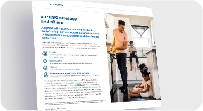 INTRODUCTION PEOPLE COMMUNITY PLANET GOVERNANCE APPENDIX our ESG strategy and pillars Aligned with our purpose to make it easy to feel at home, our ESG vision and principles are embedded in all business activities. We recognize that our ESG journey is only beginning – and we are committed to making continued progress in 2022 and beyond. Our ESG vision and principles are embedded across our business, with key pillars and our 2021 progress highlighted throughout this report. People: create an equitable, inclusive work environment where all Associates feel at home and can thrive Community: provide a sense of home to the people and communities we serve Planet: do our part to protect the planet we call home Governance & stakeholder engagement: elevate and embed strong ethical values and a robust governance framework We actively incorporate stakeholder perspectives into our ESG strategy. In 2020 we conducted an assessment to inform our ESG strategy and goals. The results of the assessment can be found on page 11 of our 2020 ESG Report. In 2021, we focused on establishing the foundational elements to support operationalizing this program across all banners. In 2022, we plan to undertake an in-depth materiality assessment to further understand and integrate the perspectives of major stakeholders, including shareholders, Associates, customers, suppliers, and community groups. The results of this materiality 1 assessment will be published in next year’s 2022 ESG Report. 1 Materiality, as defined for this report, refers to our current and evolving view on what is most impactful for the Company’s ESG performance. This definition is different than the definition of materiality used for filings with the U.S. Securities and Exchange Commission (SEC). Bed Bath & Beyond 2021 ESG Report 7