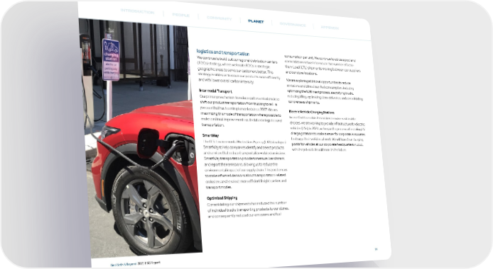 INTRODUCTION PEOPLE COMMUNITY PLANET GOVERNANCE APPENDIX logistics and transportation consumption per unit. We continue to utilize a pool and We continue to build out our regional distribution centers consolidation network to reduce the number of Less- (RDCs) strategy, where we locate RDCs in strategic than-Load (LTL) shipments moving between our suppliers geographic areas to serve our customers better. This and our store locations. strategy enables us to move our products more efficiently We are exploring additional opportunities to reduce and with lower overall carbon intensity. emissions and drive down fuel consumption, including Intermodal Transport optimizing the fulfillment process, electrifying trucks, reducing idling, optimizing store deliveries, and consolidating Our primary mechanism to reduce carbon emissions is to our overseas shipments. shift our product transportation from trucking to rail – a process that has been implemented since 2007. We are Electric Vehicle Charging Stations maximizing this mode of transportation where possible to In an effort to enable Associates to make sustainable make continual improvements as it relates to logistics and choices, we are working to provide infrastructure for electric transportation. vehicles (EVs). In 2021, we began the process of installing EV SmartWay charging stations to make it easier for corporate Associates to charge their vehicles at work. We will have four charging The U.S. Environmental Protection Agency (EPA) developed points for vehicles at our corporate headquarters in 2022, SmartWay to help companies identify and select products with the potential to add more in the future. and services that reduce transportation-related emissions. SmartWay transportation providers measure, benchmark, and report their emissions, allowing us to reduce the environmental impact of our supply chain. This positions us to make informed decisions about transportation-related emissions and to select more efficient freight carriers and transport modes. Optimized Shipping Consolidating our shipments has reduced the number of individual trucks transporting products to our stores, and consequently reduced our emissions and fuel Bed Bath & Beyond 2021 ESG Report 26