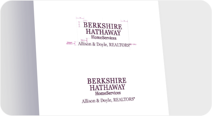 Berkshire Hathaway HomeServices Basic Branding Guidelines 14 V E rt ICAL St ACK WI t HOU t Q UALI ty S EAL • DBA must be centered along with the Berkshire Hathaway logomark. • DBA must not extend past the stacked Berkshire Hathaway by more than 2 y on each side. Allison & Doyle, REALTORS X 25% X Y 2Y 2Y 75% X Between 66-85% X Allison & Doyle, REALTORS