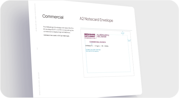 S SERVICE HOME Y A Commercial A2 Notecard Envelope W THA SHIRE HAThe following is the design and layout for the A2 envelope (5.75” x 4.375”) incorporating the 0.375” BERK commercial company logo and address. Address line is set in 10/12pt Manrope. 0.375” 456 Main St. • Chignik • AK • 99564 141 Address Line is Set in Manrope 10pt Over 12 Point Leading N 2023 A S J BRAND GUIDELINE