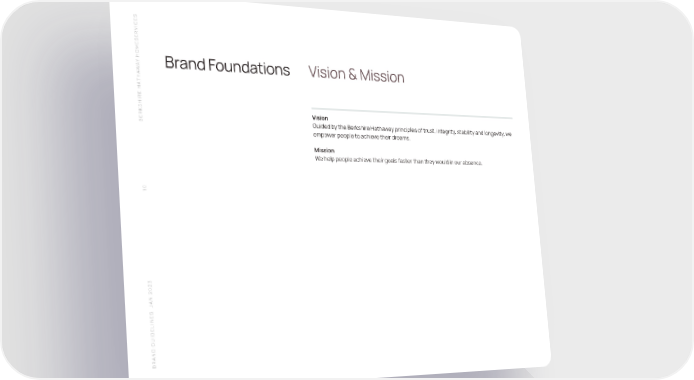S SERVICE HOME Y A Brand Foundations Vision & Mission W THA SHIRE HA Vision BERK Guided by the Berkshire Hathaway principles of trust, integrity, stability and longevity, we empower people to achieve their dreams. Mission We help people achieve their goals faster than they would in our absence. 10 N 2023 A S J BRAND GUIDELINE