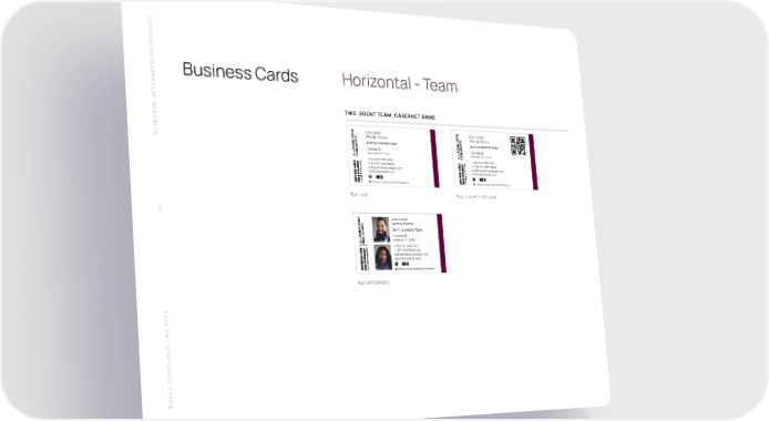 S SERVICE HOME Y A Business Cards Horizontal - Team W THA TWO-AGENT TEAM, CABERNET BAND SHIRE HA John Smith John Smith BERK Wendy Owens Wendy Owens SMITH & OWENS TEAM SMITH & OWENS TEAM 456 Main St. 456 Main St. Anytown, ST 12345 Anytown, ST 12345 +1 949 794 7900 John +1 949 794 7900 John +1 949 794 7900 Wendy +1 949 794 7900 Wendy hello@smithowensteam.com hello@smithowensteam.com smithowensteam.com smithowensteam.com A member of the franchise system of BHH Aff iliates, LLC A member of the franchise system of BHH Aff iliates, LLC Text only Text only with QR code 85 John Smith Wendy Owens SMITH & OWENS TEAM 456 Main St. Anytown, ST 12345 +1 949 794 7900 John +1 949 794 7900 Wendy hello@smithowensteam.com smithowensteam.com A member of the franchise system of BHH Aff iliates, LLC Text with photos N 2023 A S J BRAND GUIDELINE