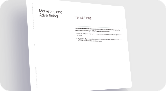 S SERVICEMarketing and HOME Y A Advertising Translations W THA SHIRE HA You may advertise in any language as long as you follow the Brand Guidelines for BERK marketing and provided you follow two additional guidelines: • The logo and your company name may NOT be translated and must always remain in English. • Any portion of your advertisement that is written in another language must be done by a reputable translation service company. 20 N 2023 A S J BRAND GUIDELINE