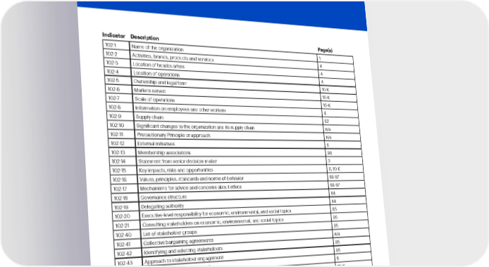 Best Buy Fiscal Year 2022 ESG Report | 103 GRI index . 102-1 Name of the organization 1 102-2 Activities, brands, products and services 4 102-3 Location of headquarters 4 102-4 Location of operations 4 102-5 Ownership and legal form 10-K 102-6 Markets served 10-K 102-7 Scale of operations 10-K 102-8 Information on employees and other workers 4 102-9 Supply chain 62 102-10 Significant changes to the organization and its supply chain n/a 102-11 Precautionary Principle or approach n/a 102-12 External initiatives 6 102-13 Membership associations 96 102-14 Statement from senior decision-maker 3 102-15 Key impacts, risks and opportunities 6, 10-K 102-16 Values, principles, standards and norms of behavior 86-87 102-17 Mechanisms for advice and concerns about ethics 86-87 102-18 Governance structure 84 102-19 Delegating authority 84 102-20 Executive-level responsibility for economic, environmental, and social topics 85 102-21 Consulting stakeholders on economic, environmental, and social topics 95 102-40 List of stakeholder groups 95 102-41 Collective bargaining agreements n/a 102-42 Identifying and selecting stakeholders 95 102-43 Approach to stakeholder engagement 95 102-44 Key topics and concerns raised 8 102-45 Entities included in consolidated financial statements 10-K 102-46 Defining report content and boundaries 8 102-47 List of material topics 8 102-48 Restatements of information n/a 102-49 Changes in reporting n/a 102-50 Reporting period 8 Indicator Description Page(s)