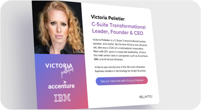 Victoria Pelletier C-Suite Transformational Leader, Founder & CEO Victoria Pelletier is a C-Suite Transformational Leader, speaker, and author. By the time Victoria was 24 years old, she was a COO of a multinational corporation. Now with 20+ years in corporate leadership, Victoria has held senior roles in companies such as Accenture, IBM, and American Express. Victoria was named one of the 50 most influential business leaders in technology by Insight Success. See our interview with Victoria Pelletier