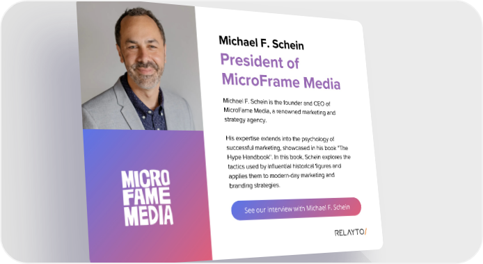 Michael F. Schein President of MicroFrame Media Michael F. Schein is the founder and CEO of MicroFame Media, a renowned marketing and strategy agency. His expertise extends into the psychology of successful marketing, showcased in his book "The Hype Handbook". In this book, Schein explores the tactics used by influential historical figures and applies them to modern-day marketing and branding strategies. See our interview with Michael F. Schein
