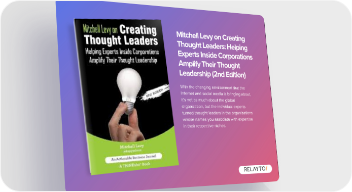 Mitchell Levy on Creating Thought Leaders: Helping Experts Inside Corporations Amplify Their Thought Leadership (2nd Edition) With the changing environment that the Internet and social media is bringing about, it's not as much about the global organization, but the individual experts turned thought leaders in the organizations whose names you associate with expertise in their respective niches.