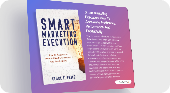 Smart Marketing Execution: How To Accelerate Profitability, Performance, And Productivity How do you turn a $1 million company into a $10 million one? Or into a $100 million or even a $1 billion company? The answer: Smart execution. Smart execution enables a corporation to achieve its vision, plans, and goals. Smart Execution is the secret sauce of Octain Growth System, a marketing operating system that reduces costs and improves business performance, while laying a foundation for sustainable business operations. This book is your road map to implementing the Octain Growth System, so you can achieve clarity, confidence and control of all your marketing functions.
