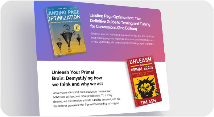 Landing Page Optimization: The Definitive Guide to Testing and Tuning for Conversions (2nd Edition) Effective Internet marketing requires that you test and optimize your landing pages to maximize exposure and conversion rate. A fully updated guide to making your landing pages profitable Unleash Your Primal Brain: Demystifying how we think and why we act Once you understand brain evolution, many of our behaviors will become more predictable. To a scary degree, we are reactive animals ruled by passions, and not the rational geniuses with free will that we like to imagine.