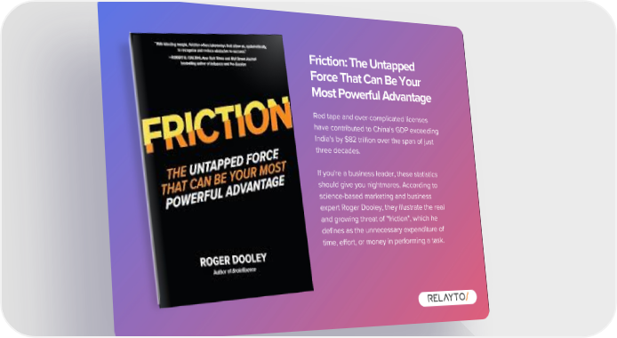 Friction: The Untapped Force That Can Be Your Most Powerful Advantage Red tape and over-complicated licenses have contributed to China's GDP exceeding India's by $82 trillion over the span of just three decades. If you're a business leader, these statistics should give you nightmares. According to science-based marketing and business expert Roger Dooley, they illustrate the real and growing threat of "friction", which he defines as the unnecessary expenditure of time, effort, or money in performing a task.