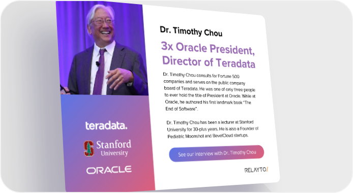 Dr. Timothy Chou 3x Oracle President, Director of Teradata Dr. Timothy Chou consults for Fortune 500 companies and serves on the public company board of Teradata. He was one of only three people to ever hold the title of President at Oracle. While at Oracle, he authored his first landmark book