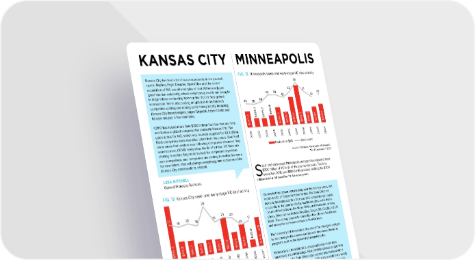 KANSAS CITY MINNEAPOLIS FIG. 13 Minneapolis seed- and early-stage VC deal activity Kansas City has had a lot of success recently in the govtech space. Replica, PayIt, Daupler, OpenCities and the recent 66 acquisition of NIC are all examples of that. All have enjoyed 52 great traction nationally, raised early money locally and brought 48 48 51 in large follow-on funding from top tier VCs as they gained 43 42 46 momentum. We’re also seeing an uptick in industrial tech 36 35 38 companies scaling and raising early money locally, including 8 Kansas City-based angels. Super Dispatch, Labor Charts and 3 2 7. . . 6 Kenzen are just a few examples. 9 1 2 3 129 $ 9 3 6 . $1 . . 8 0 . .1 .6 $ 2 3 . . 1 1 2 1 4 6 0 C2FO has raised more than $300 million from top venture firms 24 28 20 43 61 188 2 3 and is now a global company that started in Kansas City. The $ $ $ $ $ $ $ $ same is true for NIC, which was recently acquired for $2.3 billion. 1 2 3 4 5 6 7 8 9 * Both companies have recruited talent from the coasts. Brad Feld 1 1 1 1 1 1 1 1 1 20 1 20 20 20 20 20 20 20 20 20 20 02 once wrote that venture was following companies wherever they 2 were located. COVID really blew the lid off of that. VC firms are Deal value ($M) Deal count starting to realize they need to look for companies anywhere and everywhere, and companies are starting to realize the same Source: PitchBook | Geography: Minneapolis for new talent. This will change everything, and ecosystems like *As of September 1, 2021 Kansas City can benefit as a result. eed- and early-stage Minneapolis startups have raised at least LESA MITCHELL $200 million of VC in six of the past seven years. The lone General Manager, Techstars Sexception, 2019, saw $188.6 million raised, making the $200 million level a fair baseline for the ecosystem. FIG. 12 Kansas City seed- and early-stage VC deal activity 29 Our market has grown considerably over the last few years, and we have a lot of factors to thank for that. The Twin Cities are home to the highest ratio of Fortune 500 companies per capita 21 19 20 19 21 20 of any city in the country. On the healthcare side, we’re home 18 17 to UnitedHealth Group, the Mayo Clinic, and Medtronic, among 15 others. Other names include Best Buy, Target, 3M, Cargill, and US Bank. That strong corporate foundation has allowed healthcare 9 10 and enterprise software startups to flourish here. 8 8 2 .7 .7 3 6 .6 20. 0 6. 4. . .6 7. 4 $ The University of Minnesota is also one of the strongest colleges 1 6 5 7. 8. 13 4 42 3 3 3 8 4 6 in the country in life science and biotech innovation, thanks to $ $ $ $ $ $ $ $ $ $7 programs such as the University Enterprise Labs. 1 2 3 4 5 6 7 8 9 * 1 1 1 1 1 1 1 1 1 20 1 20 20 20 20 20 20 20 20 20 20 02 Minnesota is a beautiful state, and people who move here 2 appreciate the surroundings. Many families choose to split their Deal value ($M) Deal count time between the Twin Cities and a second lake home within a Source: PitchBook | Geography: Kansas City two- or three-hour drive of the city. With remote work more widely *As of September 1, 2021 accepted post-COVID, many employees are spending upwards of three–four days a week working from their cabins. That’s a natural draw for entrepreneurs and the ecosystem as a whole he Kansas City ecosystem is in its early stages of development going forward. but has the ingredients to emerge in the coming years. Seed and Tearly-stage VC deal volume is consistent every year, hovering around 20 rounds on an annual basis. Between 2012 and 2016, ROB WEBER combined seed- and early-stage value was consistently below $50 Co-founder and Managing Partner, Great North million, notwithstanding an outlier record year in 2011 of $136.8 million. Ventures More recently, between 2017 and 2021, three years have seen at least $65 million in combined funding. Through early September, 2021 is on pace to be Kansas City’s second-highest on record. 8 / Beyond Silicon Valley: Coastal dollars and local investors accelerate early-stage startup funding across the US