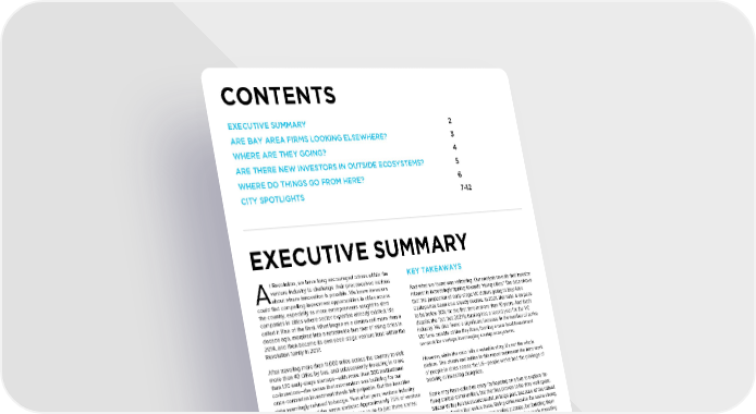 CONTENTS EXECUTIVE SUMMARY 2 ARE BAY AREA FIRMS LOOKING ELSEWHERE? 3 WHERE ARE THEY GOING? 4 ARE THERE NEW INVESTORS IN OUTSIDE ECOSYSTEMS? 5 WHERE DO THINGS GO FROM HERE? 6 CITY SPOTLIGHTS 7-12 EXECUTIVE SUMMARY t Revolution, we have long encouraged others within the KEY TAKEAWAYS venture industry to challenge their preconceived notions Aabout where innovation is possible. We knew investors And what we found was validating. Our analysis reveals that investor could find compelling investment opportunities in cities across interest is increasingly tipping towards “rising cities.” The data shows the country, especially as more entrepreneurs sought to start that the proportion of early-stage VC dollars going to Bay Area companies in cities where sector expertise already existed. We startups has been on a steady decline. In 2021, that ratio is on pace called it Rise of the Rest. What began as a clarion call more than a to be below 30% for the first time in more than 10 years. And that’s decade ago, morphed into a nationwide bus tour of rising cities in despite the fact that 2021 is turning into a record year for the VC 2014, and then became its own seed-stage venture fund within the industry. We also found a significant increase in the number of active Revolution family in 2017. VC firms outside of the Bay Area, forming a new local investment network for startups in emerging startup ecosystems. After traveling more than 11,000 miles across the country to visit more than 40 cities by bus, and subsequently investing in more However, while the data tells a valuable story, it’s not the whole than 170 early-stage startups—with more than 300 institutional picture. The charts and tables in this report represent the hard work co-investors—the sense that momentum was building for our of people in cities across the US—people we’ve had the privilege of once-contrarian investment thesis felt palpable. But the headline backing or investing alongside. data seemingly refused to budge. Year after year, venture industry reporting delivered the same statistic: Approximately 75% of venture Some may have called us crazy for hopping on a bus to explore far- capital (VC)investment dollars continued to go to just three states: flung startup communities, but that has proven to be time well spent. California, New York, and Massachusetts. Silicon Valley has been successful, in large part, because of the robust network density that exists there. Rising cities require the same strong, As is the case with so many things in tech today, however, the collaborative networks to support scaling startups, but building them pandemic seemingly accelerated interest in venture investing takes time and effort. Meeting founders on Zoom has made investing throughout the country, rather than in just a select concentration outside the Valley easier for VCs, but that’s no substitute for getting of locales. on a plane (or bus) to connect with entrepreneurs face-to-face and the diverse communities of investors, corporations, and universities that With that as a backdrop, we partnered with PitchBook Data to look support them. beyond the headlines and see where venture dollars—early stage in particular—were really going. Revolution Chairman & CEO Steve Case and the Rise of the Rest Team 2 / Beyond Silicon Valley: Coastal dollars and local investors accelerate early-stage startup funding across the US