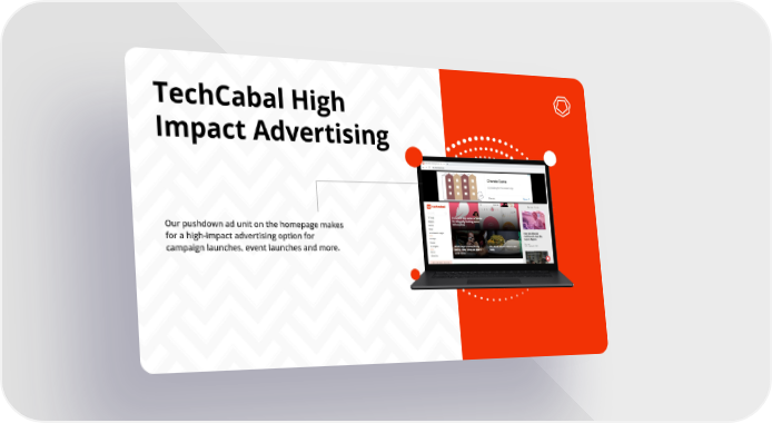 Big Cabal Media Kit Page 7 Page 9TechCabal High Impact Advertising Our pushdown ad unit on the homepage makes for a high-impact advertising option for campaign launches, event launches and more.