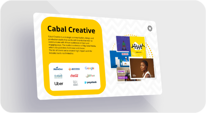 Cabal Creative Cabal Creative is a strategic communication, design and production studio that works with brands that wish to communicate with African audiences in fresh and engaging ways. The studio is a division of Big Cabal Media, which also publishes TechCabal and Zikoko. The list of clients we’ve created high-impact work for includes but is not limited to: