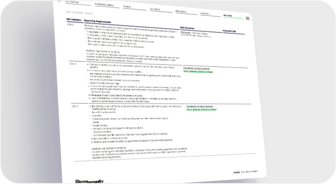 OUR PURPOSE PIONEERING SCIENCE 138 GRI CONTENT INDEX BIOGEN 2021 YEAR IN REVIEW PATIENTS OUR PEOPLE ENVIRONMENT COMMUNITY REPORTING GRI indicator Reporting Requirements 2021 Response Alignment SDG 201–2 Risks and opportunities posed by climate change that have the potential to generate substantive changes in operations, revenue or expenditure, including: • A description of the risk or opportunity and its classification as either physical, regulatory or other. • A description of the impact associated with the risk or opportunity. • The financial implications of the risk or opportunity before action is taken. • The methods used to manage the risk or opportunity. • The costs of actions taken to manage the risk or opportunity. Additional requirements for compiling: 2.2 When compiling the information specified in Disclosure 201-2, if the reporting organization does not have a system in place to calculate the financial implications or costs, or to make revenue projections, it shall report its plans and timeline to develop the necessary systems. TCFD Report – 2021 Year in Review [2021 CDP Climate Change disclosure] 201–3 a. If the plan’s liabilities are met by the organization’s general resources, the estimated value of those liabilities. b. If a separate fund exists to pay the plan’s pension liabilities: • The extent to which the scheme’s liabilities are estimated to be covered by the assets that have been set aside to meet them. • The basis on which that estimate has been arrived at. • When that estimate was made. c. If a fund set up to pay the plan’s pension liabilities is not fully covered, explain the strategy, if any, adopted by the employer to work toward full coverage, and the timescale, if any, by which the employer hopes to achieve full coverage. d. Percentage of salary contributed by employee or employer. e. Level of participation in retirement plans, such as participation in mandatory or voluntary schemes, regional or country-based schemes, or those with financial impact. Consolidated Financial Statements Item 1., Business, 2021 Annual Report 201–4 a. Total monetary value of financial assistance received by the organization from any government during the reporting period, including: • Tax relief and tax credits. • Subsidies. • Investment grants, research and development grants, and other relevant types of grant. • Awards. • Royalty holidays. • Financial assistance from Export Credit Agencies (ECAs). • Financial incentives. • Other financial benefits received or receivable from any government for any operation. b. The information in 201-4-a by country. c. Whether, and the extent to which, any government is present in the shareholding structure. Additional requirements for compiling: 2.5 When compiling the information specified in Disclosure 201–4, the reporting organization shall identify the monetary value of financial assistance received from government through consistent application of generally accepted accounting principles. Consolidated Financial Statements Item 1., Business, 2021 Annual Report *