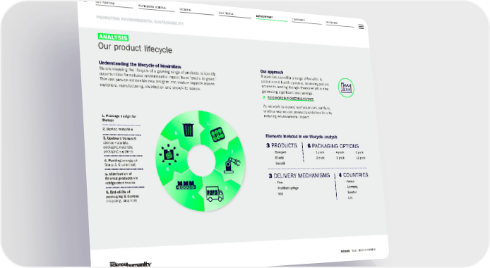 OUR PURPOSE PIONEERING SCIENCE COMMUNITY REPORTING 90 PROMOTING ENVIRONMENTAL SUSTAINABILITY BIOGEN 2021 YEAR IN REVIEW PATIENTS OUR PEOPLE ENVIRONMENT ANALYSIS Our product lifecycle Our approach Biosimilars can offer a range of benefits to patients and health systems, improving patient access to leading biologic therapies while also generating significant cost savings. Þ READ MORE IN PIONEERING SCIENCE As we work to expand our biosimilars portfolio, another way we can promote public health is by reducing environmental impact. 3 PRODUCTS – Benepali – Flixabi – Imraldi 4 COUNTRIES – France – Germany – Sweden – U.K. 6 PACKAGING OPTIONS – 1-pack – 2-pack – 4-pack – 5-pack – 6-pack – 12-pack 3 DELIVERY MECHANISMS – Pen – Prefilled syringe – Vial 1. Package design for therapy 2. Device materials 3. Upstream transport (device materials, packaging materials, packaging suppliers) 4. Packing energy (at Sharp & Grunenthal) 5. Distribution of finished products via refrigerated trucks 6. End-of-life of packaging & devices (recycling, disposal) 1. 2. 3. 4. 5. 6. Understanding the lifecycle of biosimilars We are mapping the lifecycle of a growing range of products to identify opportunities for reduced environmental impact from “cradle to grave.” This can provide actionable new insights into product impacts across materials, manufacturing, distribution and end-of-life issues. Elements included in our lifecycle analysis