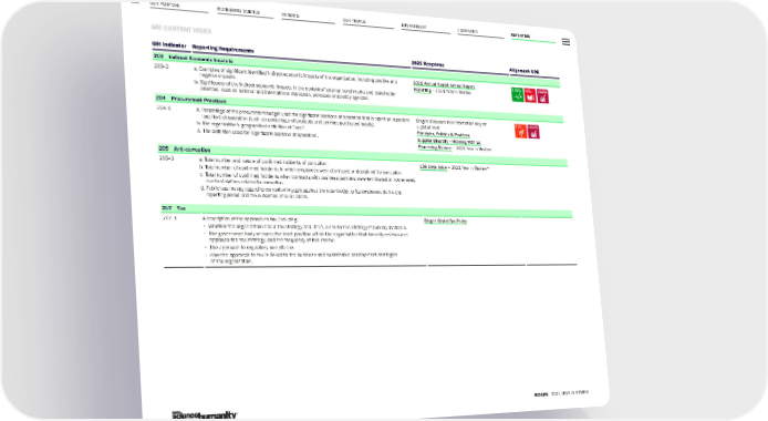 OUR PURPOSE PIONEERING SCIENCE 139 GRI CONTENT INDEX BIOGEN 2021 YEAR IN REVIEW PATIENTS OUR PEOPLE ENVIRONMENT COMMUNITY REPORTING GRI indicator Reporting Requirements 2021 Response Alignment SDG 203 Indirect Economic Impacts 203–2 a. Examples of significant identified indirect economic impacts of the organization, including positive and negative impacts. b. Significance of the indirect economic impacts in the context of external benchmarks and stakeholder priorities, such as national and international standards, protocols and policy agendas. 2021 Annual Report Annual Report Reporting – 2021 Year in Review 204 Procurement Practices 204–1 a. Percentage of the procurement budget used for significant locations of operation that is spent on suppliers local to that operation (such as percentage of products and services purchased locally). b. The organization’s geographical definition of ’local’. c. The definition used for ’significant locations of operation’. Biogen discloses this information only on a global level Principles, Policies & Positions Supplier Diversity – Working With Us Pioneering Science – 2021 Year in Review 205 Anti-corruption 205–3 a. Total number and nature of confirmed incidents of corruption. b. Total number of confirmed incidents in which employees were dismissed or disciplined for corruption. c. Total number of confirmed incidents when contracts with business partners were terminated or not renewed due to violations related to corruption. d. Public legal cases regarding corruption brought against the organization or its employees during the reporting period and the outcomes of such cases. ESG Data Table – 2021 Year in Review * 207 Tax 207–1 A description of the approach to tax, including: • Whether the organization has a tax strategy and, if so, a link to this strategy if publicly available. • The governance body or executive-level position within the organization that formally reviews and approves the tax strategy, and the frequency of this review. • The approach to regulatory compliance. • How the approach to tax is linked to the business and sustainable development strategies of the organization. Biogen Global Tax Policy