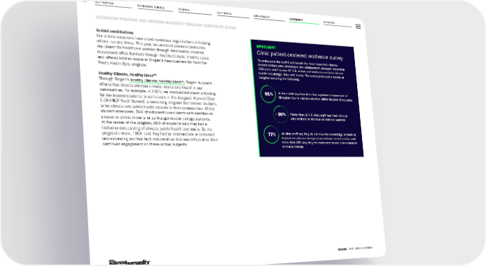 OUR PURPOSE PIONEERING SCIENCE REPORTING 99 ADVANCING PURPOSE AND SERVING HUMANITY THROUGH CORPORATE GIVING BIOGEN 2021 YEAR IN REVIEW PATIENTS OUR PEOPLE ENVIRONMENT COMMUNITY SPOTLIGHT Clinic patient-centered resilience survey To make sure the toolkit addressed the most important climate- related patient care challenges, the collaborators surveyed more than 450 clinic staff across 47 U.S. states and territories on their climate health knowledge, risks and needs. The survey produced a wealth of insights including the following: In-kind contributions Our in-kind donations have aided numerous organizations in helping others live and thrive. This year, we provided personal protective equipment for healthcare workers through Americares; donated repurposed office furniture through Healthy Climate, Healthy Lives; and offered kitchen space at Biogen’s headquarters for Food For Free’s Heat-n-Eats program. Healthy Climate, Healthy Lives™ Through Biogen’s Healthy Climate, Healthy Lives™ , Biogen supports efforts that directly address climate, equity and health in our communities. For example, in 2021, we provided scholarship funding for low-income students to participate in the inaugural Harvard Chan C-CHANGE Youth Summit, a week-long program that trained students to be climate and public health leaders in their communities. Of the student attendees, 76% of scholarship recipients self-identified as a racial or ethnic minority or as first-generation college students. At the outset of the program, 60% of students said they had a limited understanding of climate, public health and equity. By the program’s close, 100% said they had an intermediate or advanced understanding and had built relationships that would help drive their continued engagement on these critical subjects. of clinic staff say their clinic has experienced some kind of disruption due to extreme weather within the past three years. Fewer than 1 in 5 clinic staff feel their clinic is very resilient in the face of extreme weather. of clinic staff say they do not have the knowledge or tools to implement climate change preparedness at their clinic, and more than 95% say they are motivated to use new resources to make change. 81% 77% < 20%