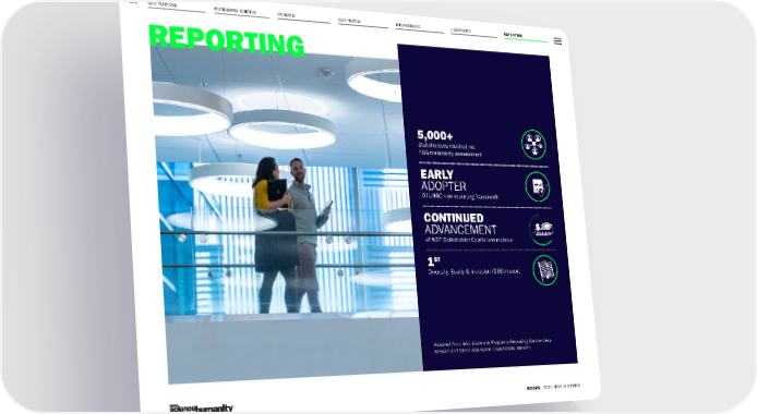 OUR PURPOSE PIONEERING SCIENCE 114 BIOGEN 2021 YEAR IN REVIEW PATIENTS OUR PEOPLE ENVIRONMENT COMMUNITY REPORTING REPORTING 5,000+ Stakeholders reached via ESG materiality assessment E A R LY ADOPTER Of UNGC new reporting framework CONTINUED ADVANCEMENT of WEF Stakeholder Capitalism metrics 1 ST Diversity, Equity & Inclusion (DE&I) report Pictured (from left): University Programs Recruiting Partner Jess Stewart and Talent Acquisition Lead Dennis Mercier.