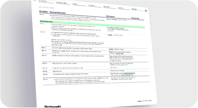 OUR PURPOSE PIONEERING SCIENCE 135 GRI CONTENT INDEX BIOGEN 2021 YEAR IN REVIEW PATIENTS OUR PEOPLE ENVIRONMENT COMMUNITY REPORTING GRI indicator Reporting Requirements 2021 Response Alignment SDG 102–44 Key topics and concerns that have been raised through stakeholder engagement, including: • How the organization has responded to those key topics and concerns, including through its reporting. • The stakeholder groups that raised each of the key topics and concerns. Patients and Reporting – 2021 Year in Review Reporting practice 102–45 a. A list of all entities included in the organization’s consolidated financial statements or equivalent documents. b. Whether any entity included in the organization’s consolidated financial statements or equivalent documents is not covered by the report. Item 1., Business, 2021 Annual Report All major entities are included in the boundaries of this report. 102–46 a. An explanation of the process for defining the report content and the topic Boundaries. b. An explanation of how the organization has implemented the Reporting Principles for defining report content. Additional requirements for compiling: When compiling the information specified in Disclosure 102–46, the reporting organization shall include an explanation of how the Materiality principle was applied to identify material topics, including any assumptions made. Reporting – 2021 Year in Review 102–47 A list of the material topics identified in the process for defining report content. Reporting – 2021 Year in Review * 102–48 The effect of any restatements of information given in previous reports, and the reasons for such restatements. Restatements for previous disclosed metrics are identified in the ESG Data Table . 102–49 Significant changes from previous reporting periods in the list of material topics and topic Boundaries. Biogen conducted an ESG materiality assessment in 2021. The results inform the topic boundaries of this report and can be found in the Reporting section of this 2021 Year in Review. 102–50 Reporting period for the information provided. Data cover fiscal year ending Dec. 31, 2021 (Some activities from 2022 are also included). 102–51 If applicable, the date of the most recent previous report. April 23, 2021 102–52 Reporting cycle. We report on an annual basis. 102–53 The contact point for questions regarding the report or its contents. Biogen Reputation contact: [email protected] Responsibility contact: [email protected] 102–54 The claim made by the organization, if it has prepared a report in accordance with the GRI Standards, either: • ’This report has been prepared in accordance with the GRI Standards: Core option’. • ’This report has been prepared in accordance with the GRI Standards: Comprehensive option’. This report has been prepared in accordance with the GRI Standards: Core option / Alignment option.