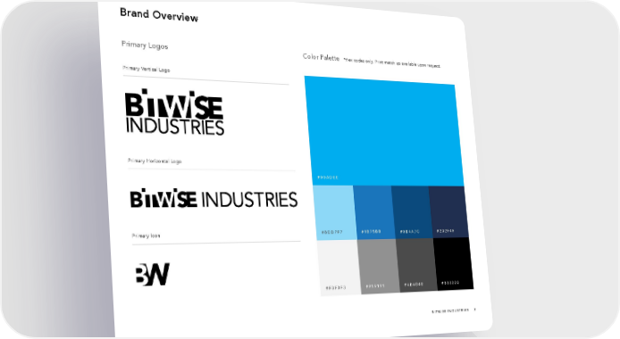 BITWISE INDUSTRIES 2 Brand Overview Primary Logos Color Palette Primary Vertical Logo Primary Horizontal Logo Primary Icon #F3F3F3 #919191 #4B4B4B #000000 *Hex codes only, Print match up available upon request. #00ADEE #8DD7F7 #1B75BB #0B4A7C #202F4F
