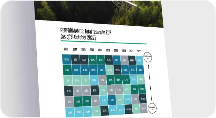 INVESTMENT OUTLOOK FOR 2023 - 31 - ASSET CLASS OVERVIEW PERFORMANCE: Total return in EUR (as of 31 October 2022) 2013 2014 2015 2016 2017 2018 2019 2020 2021 2022 Performance 21.2% 32% 11.5% 15.6% 8.4% 0.1% 30% 6.7% 36.9% 14.1% + 6.5% 19.5% 10.4% 10.7% 7.5% -0.2% 25.3% 6.3% 31.1% -8.0% 0% 8.4% 1% 10.1% 3.7% -2.7% 13.3% 5.7% 25.6% -14.4% -0.1% 7.5% -0.5% 8.1% 0.3% -3.8% 9.2% 4.8% 2.5% -14.7% -0.1% 2.6% -0.7% 4.6% -0.2% -4.1% 4.5% -5.2% -1.7% -16.3% -9.8% -17.8% -25.9% 2.3% -2.1% -13.7% 4.3% -15.8% -3.1% -18.8% Performance - Global government bonds (H) Global corporate bonds (H) Global corporate high-yield (H) Commodities (H) Developed equities (UH) Global real estate (UH) H: hedged; UH: unhedged Source: Bloomberg, Quant Research Group, BNP Paribas Asset Management Indices used: global real estate (RNGL), developed equities (MSDEWIN), global government bonds (SBWGEC), global corporate bonds (LGCPTREH), global corporate high-yield (LG30TRUH), commodities (BCOMHET); Bloomberg ticker in brackets Past performance or achievement is not indicative of current or future performance.