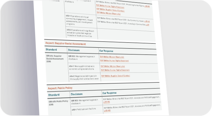 BNY MELLON ENTERPRISE ESG 105 APPENDIX Aspect: Local Communities Standard Disclosure Our Response GRI 413: Local Communities 2016 GRI 103: Management approach disclosure BNY Mellon Enterprise ESG Report 2021, Protecting Human Rights, p.86-89 BNY Mellon Human Rights Statement BNY Mellon Supplier Code of Conduct BNY Mellon Modern Slavery Act 413-1 Operations with local community engagement, impact assessments, and development programs BNY Mellon Enterprise ESG Report 2021, Our Community Impact, p.35-40 BNY Mellon Enterprise ESG Report 2021, Investing in Communities, p.67 413-2 Operations with significant actual and potential negative impacts on local communities Aspect: Supplier Social Assessment Standard Disclosure Our Response GRI 414: Supplier Social Assessment 2016 GRI 103: Management approach disclosure BNY Mellon Modern Slavery Act BNY Mellon Human Rights Statement 414 -1 New suppliers that were screened using social criteria BNY Mellon Modern Slavery Act BNY Mellon Human Rights Statement 414 -2 Negative social impacts in the supply chain and actions taken BNY Mellon Supplier Code of Conduct Aspect: Public Policy Standard Disclosure Our Response GRI 415: Public Policy 2016 GRI 103: Management approach disclosure BNY Mellon Enterprise ESG Report 2021, Advocacy and Political Engagement, p.85–86 415 -1 Political contributions BNY Mellon Enterprise ESG Report 2021, Advocacy and Political Engagement, p.85–86