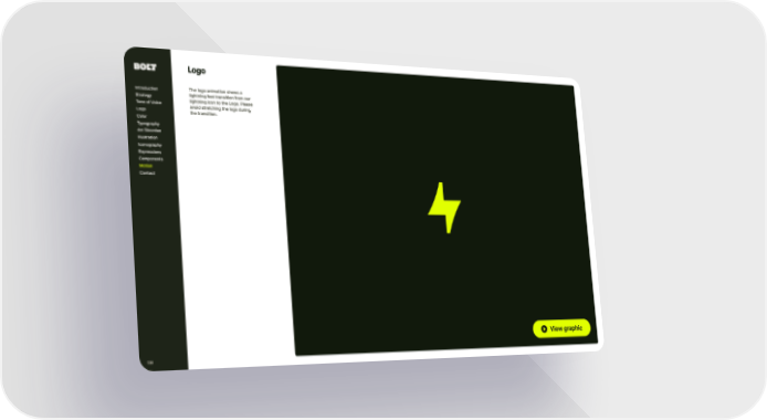 Logo The logo animation shows a lightning fast transition from our lightning icon to t he Logo. Please avoid stretching t he logo during t he transition. Introduction Strategy Tone of Voice Logo Color Typography Ar t Direction Illustration Iconography Expressions Components Contact Motion 138 View graphic