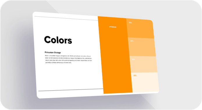 80% #FD9000 60% Colors Princeton Orange Etiam a imperdiet magna, vel egestas velit. Morbi porta id sem non varius. Duis at dolor ut velit placerat convallis tincidunt eu neque. Ut at dapibus nisl, a elementum 40% ipsum. Sed vitae nibh vitae nibh euismod egestas ut et libero. Suspendisse vel felis quis tellus ultricies ultrices quis sit amet eros. 20%
