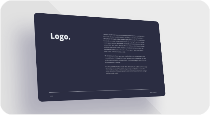 Contrary to popular belief, Lorem Ipsum is not simply random text. It has roots in a piece of classical Latin literature from 45 BC, making it over 2000 years old. Richard McClintock, a Latin professor at Hampden-Sydney College in Virginia, looked up one of the more obscure Logo. Latin words, consectetur, from a Lorem Ipsum passage, and going through the cites of the word in classical literature, discovered the undoubtable source. Lorem Ipsum comes from sections 1.10.32 and 1.10.33 of "de Finibus Bonorum et Malorum" (The Extremes of Good and Evil) by Cicero, written in 45 BC. This book is a treatise on the theory of ethics, very popular during the Renaissance. The first line of Lorem Ipsum, "Lorem ipsum dolor sit amet..", comes from a line in section 1.10.32. The standard chunk of Lorem Ipsum used since the 1500s is reproduced below for those interested. Sections 1.10.32 and 1.10.33 from "de Finibus Bonorum et Malorum" by Cicero are also reproduced in their exact original form, accompanied by English versions from the 1914 translation by H. Rackham. It is a long established fact that a reader will be distracted by the readable content of a page when looking at its layout. The point of using Lorem Ipsum is that it has a more-or-less normal distribution of letters, as opposed to using 'Content here, content here', making it look like readable English. LOGO BRAND GUIDELINES