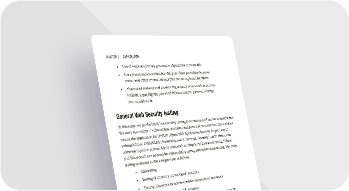 Chapter 6 DXp SeCurity • Use of weak unique key generation algorithms to create IDs • Stack traces and exception handling modules providing details of server and other internal details that can be exploited by others • Absence of auditing and monitoring security events such as account lockout, login, logout, password failed attempts, password change events, and such. General Web Security testing In this stage, we do the black box security testing for common and known vulnerabilities. We carry out testing of vulnerability scenarios and penetration scenarios. This includes testing the application for OWASP (Open Web Application Security Project) top 10 vulnerabilities, CWS/SANS (SysAdmin, Audit, Network, Security) top 25 errors, and common injection attacks. Many tools such as Burp Suite, Zed attack proxy, Fiddler, and WebScarab can be used for vulnerability testing and penetration testing. The main testing scenarios in this category are as follows: • XSS testing • Testing of directory browsing of resources • Testing of absence of access controls on protected resources. • Testing of access to URLs and resources • Checking for accidental information disclosure in cookies and HTTP headers • Checking for information leakage in server error pages and error handling • Checking of CSRF tokens • Checking for misconfigured security settings such as misconfigured HTTP headers or misconfigured error pages • Testing for buffer overflow • Testing the injection attacks (SQL injection, LDAP injection, XPath injection) • Testing for denial of service 194