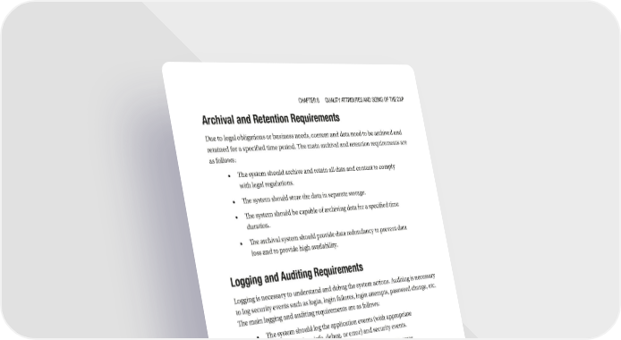 Chapter 8 Quality attributes and sizing of the dXp Archival and Retention Requirements Due to legal obligations or business needs, content and data need to be archived and retained for a specified time period. The main archival and retention requirements are as follows: • The system should archive and retain all data and content to comply with legal regulations. • The system should store the data in separate storage. • The system should be capable of archiving data for a specified time duration. • The archival system should provide data redundancy to prevent data loss and to provide high availability. Logging and Auditing Requirements Logging is necessary to understand and debug the system actions. Auditing is necessary to log security events such as login, login failures, login attempts, password change, etc. The main logging and auditing requirements are as follows: • The system should log the application events (with appropriate categories such as info, debug, or error) and security events. • The log entry should consist of timestamp, event source, error details (if any), source IP address, and user ID so that it helps the administrators to use the information. • Security events such as login failures, login attempts, elevation of privileges, account registration, workflow approvals, etc. should be logged with corresponding user IDs. • Sensitive information such as private information and session ID should not be logged. 221