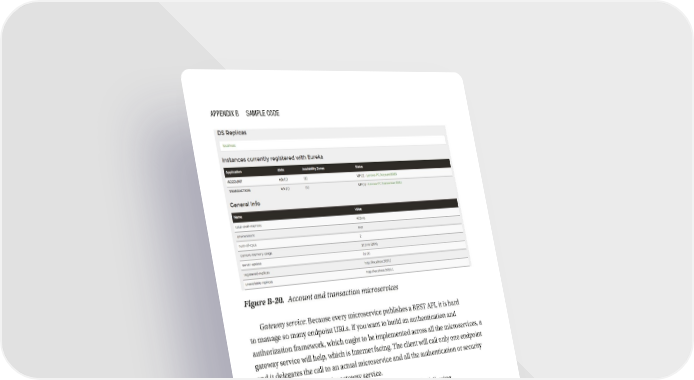 Appendix B SAmple Code Figure B-20. Account and transaction microservices Gateway service: Because every microservice publishes a REST API, it is hard to manage so many endpoint URLs. If you want to build an authentication and authorization framework, which ought to be implemented across all the microservices, a gateway service will help, which is Internet facing. The client will call only one endpoint and it delegates the call to an actual microservice and all the authentication or security checking will be done in the gateway service. Step 1: To Run the service integrator, navigate to the following source code location: \Intergartion_Framework\ABC_Bank_Integration\Microservices\ integratorService Step 2: Execute “mvnspring-boot:run” to start the services. Step 3: Hit the following URLs to check the configurations: • Account: http://localhost:8081/integrator/feign/account • Transaction: http://localhost:8081/integrator/feign/ transaction Step 4: You can open these microservices projects in Intellij IDEA IDE. 362