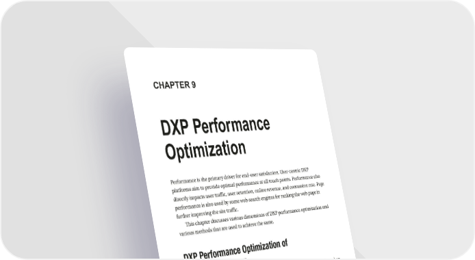 CHAPTER 9 DXP Performance Optimization Performance is the primary driver for end-user satisfaction. User-centric DXP platforms aim to provide optimal performance at all touch points. Performance also directly impacts user traffic, user retention, online revenue, and conversion rate. Page performance is also used by some web search engines for ranking the web page in further improving the site traffic. This chapter discusses various dimensions of DXP performance optimization and various methods that are used to achieve the same. DXP Performance Optimization of Presentation Layer In many scenarios, performance is taken up during the end phases of the project when the team notices performance delays during performance testing. Troubleshooting and fixing performance issues during the end stages of the project is not only costly but also impacts the project timelines. Performance optimization should be done iteratively to identify and address performance issues during early phases of the project. User Experience End-user experience is of paramount importance for a DXP. As web pages become more interactive, the page size and associated performance overhead are also increased. Enhancing the user experience involves optimizing the performance at all user touch points. © Shailesh Kumar Shivakumar, Sourabhh Sethii 2019 235 S. K. Shivakumar and S. Sethii, Building Digital Experience Platforms, https://doi.org/10.1007/978-1-4842-4303-9_9