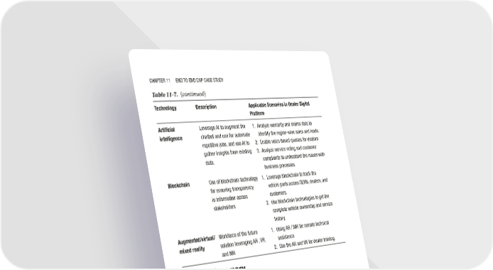 Chapter 11 end to end dXp Case study Table 11-7. (continued) Technology Description Applicable Scenarios in Dealer Digital Platform Artificial Leverage aI to augment the 1. analyze warranty and claims data to intelligence chatbot and use for automate identify the region-wise sales and leads. repetitive jobs, and use aI to 2. enable voice based queries for dealers gather insights from existing 3. analyze service rating and customer data. complaints to understand the issues with business processes. Blockchain use of blockchain technology 1. Leverage blockchain to track the for ensuring transparency vehicle parts across oeMs, dealers, and in information across customers. stakeholders 2. use blockchain technologies to get the complete vehicle ownership and service history. Augmented/virtual/ Workforce of the future 1. using ar / Mr for remote technical mixed reality solution leveraging ar , Vr, assistance and Mr 2. use the ar and Vr for dealer training. Chapter Summary • A vehicle dealer management B2B scenario is used in this case study. The key drivers and requirements for the dealer platform are next-generation user experience, business process improvements, improved information management, improved customer satisfaction, and a scalable and robust platform. • In order to architect the next-generation dealer platform we need to do the pain point analysis, define solution tenets, devise solution design principles, and develop persona-based information architecture. • The overall solution architecture of the next-generation vehicle dealer platform should define the functional view, create seamless and optimized business processes, leverage open source technologies, identify solution components mapped to key functional components, and use innovations 320